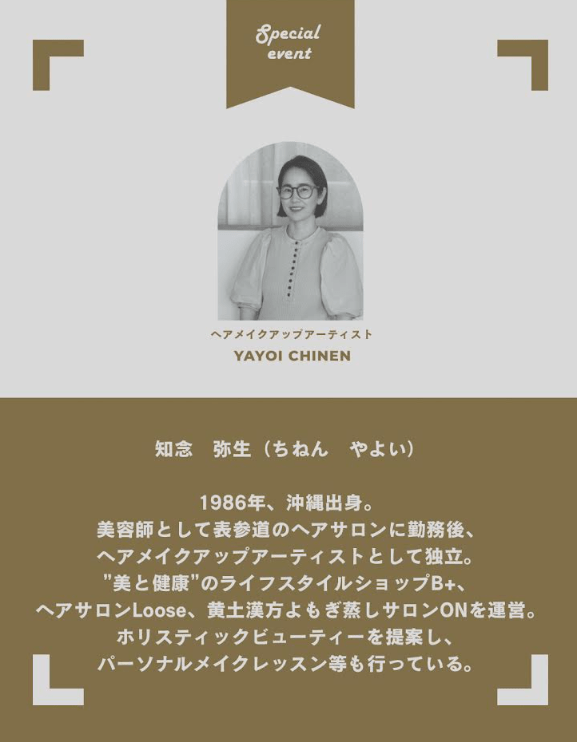 - 特典: KANAE 植物菓子 / ハーブティー / B+の甘酒(お土産)